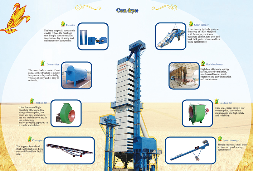 The equipment is applicable to drying of corn, sorghum, rice, soybean, barley, wheat and their seeds.